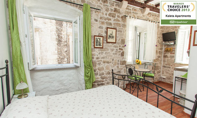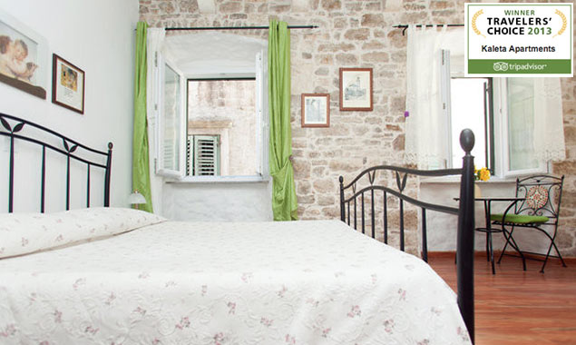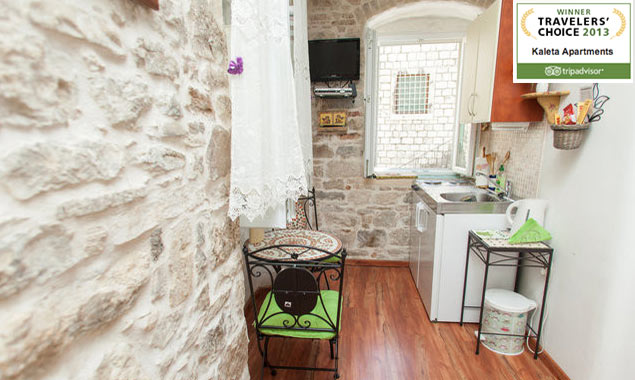 by Mina02We normally do not review the places we stay but in this instance we simply had to. After a long and action-packed tour through Eastern Europe we needed to unwind and were so glad to find that Kaleta apartments was everythingwe expected it to be. You will find there are not many hotels in the area, and even if you do, they are usually overpriced. Apartments are the best way to enjoy the Croatian cities. We were greeted by a lovely lady who was very helpful. We loved the decor of the apartment, very quaint yet rustic. It is in a very central location, a little difficult to find but given the directions from the owners, I believe it is manageable. Regarding the noise, there is a cafe below the apartments but when you close the shutters it blocks out most of the noise. It is within walking distance to the bus, train and ferry services. Overall, I could not recommend this apartment enough, it was a home away from home!!
